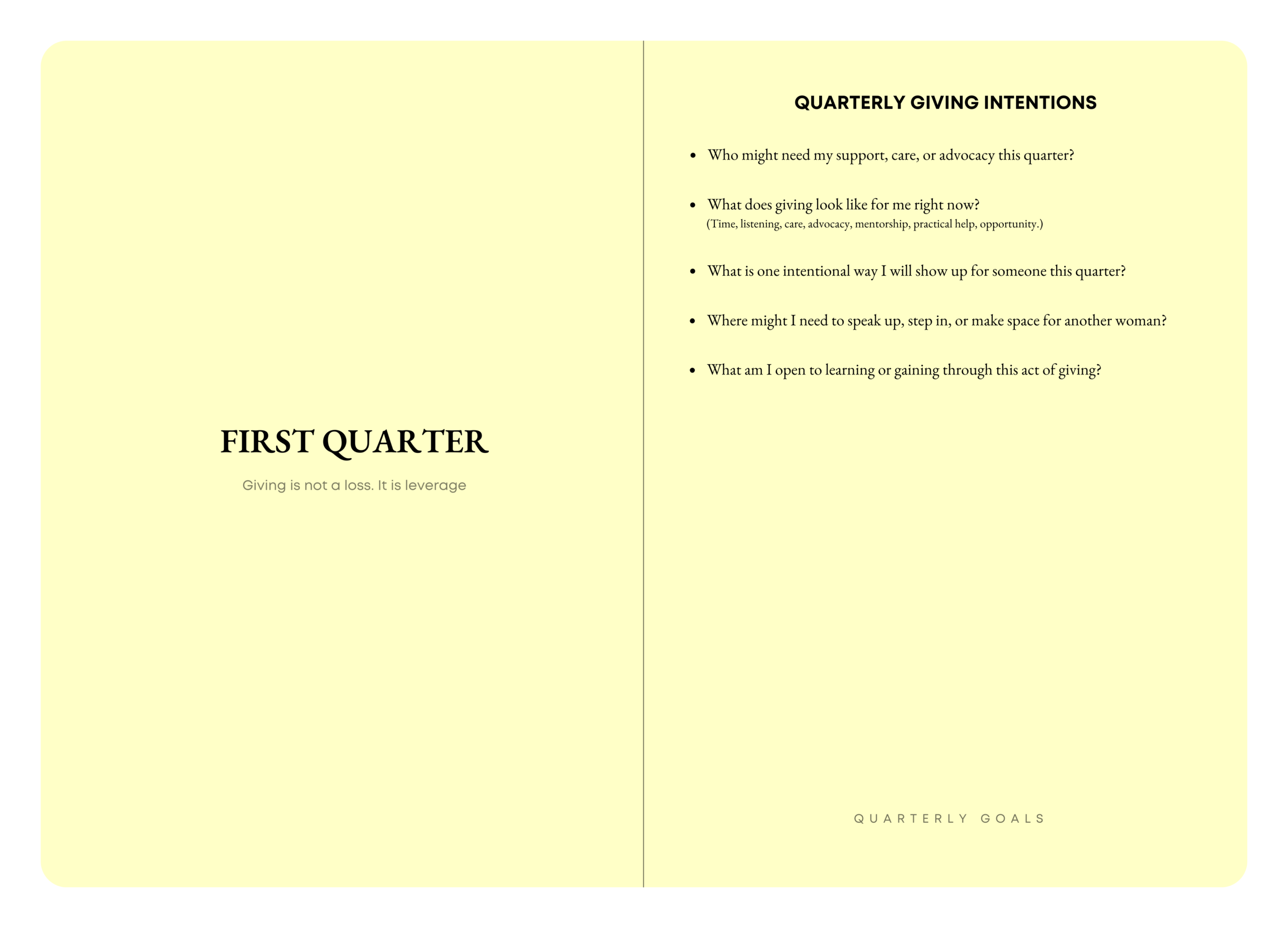 Each quarter invites women to consider what they are giving in that season.
